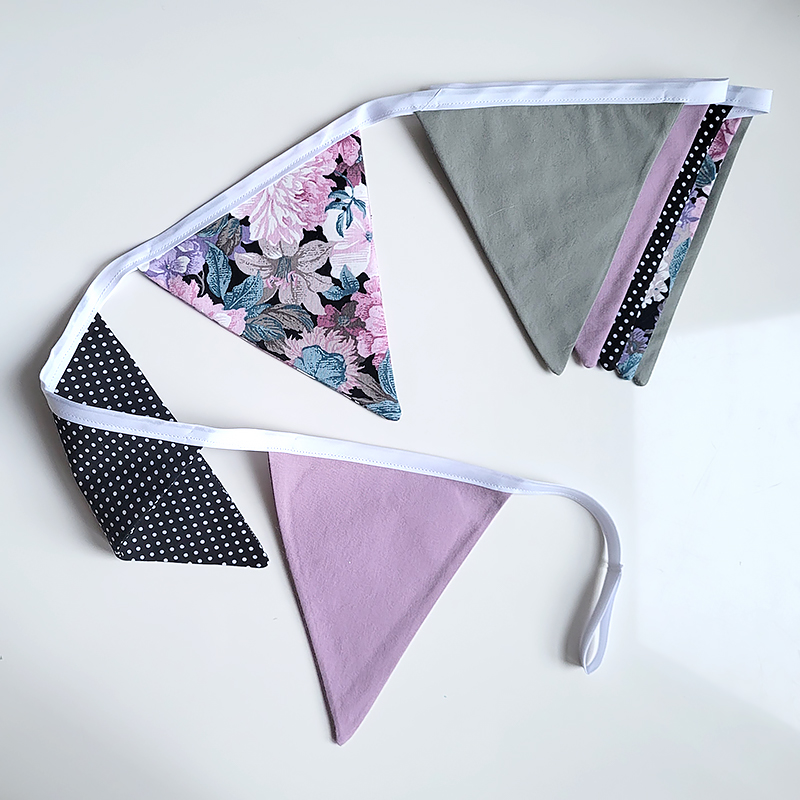 - 8 flags measure approximately 5 feet/59 inches total (not including the additional bias tape on the ends)