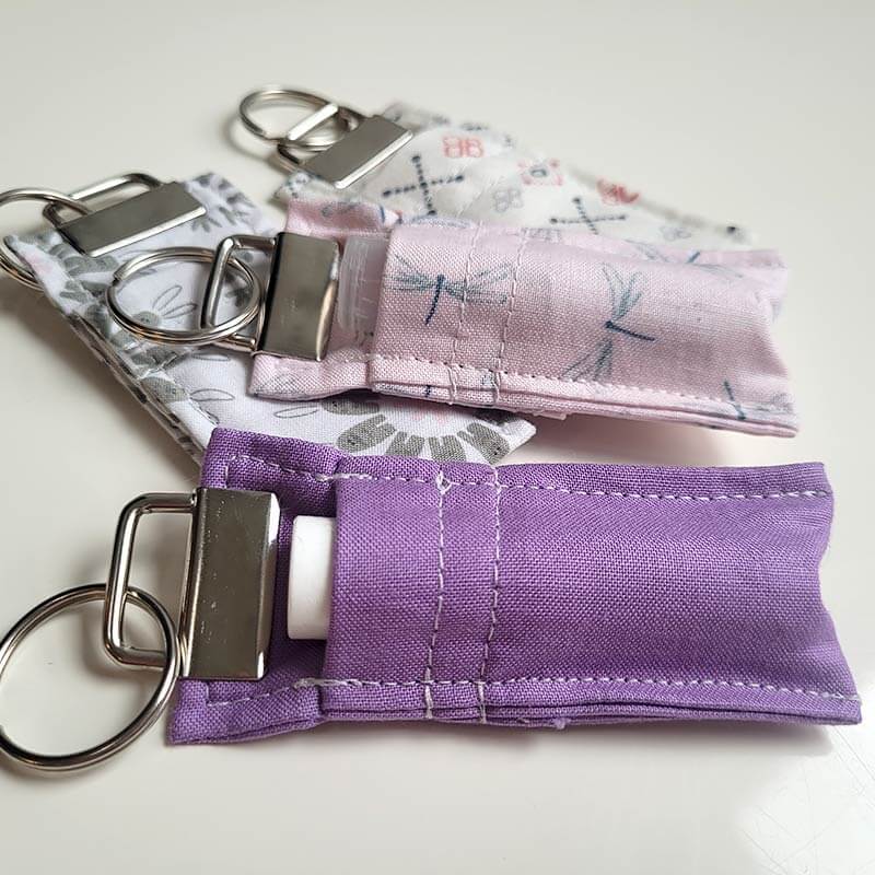 Never lose your chapstick again! These cute, functional fabric lip balm holders are machine stitched, hand-cut and assembled by Lucy, and one-of-a-kind. With a sturdy ring clip, they attach easily to keys, bags or belt loops, keeping your balm close wherever you go. It’s the little lifesaver you’ll wonder how you lived without!